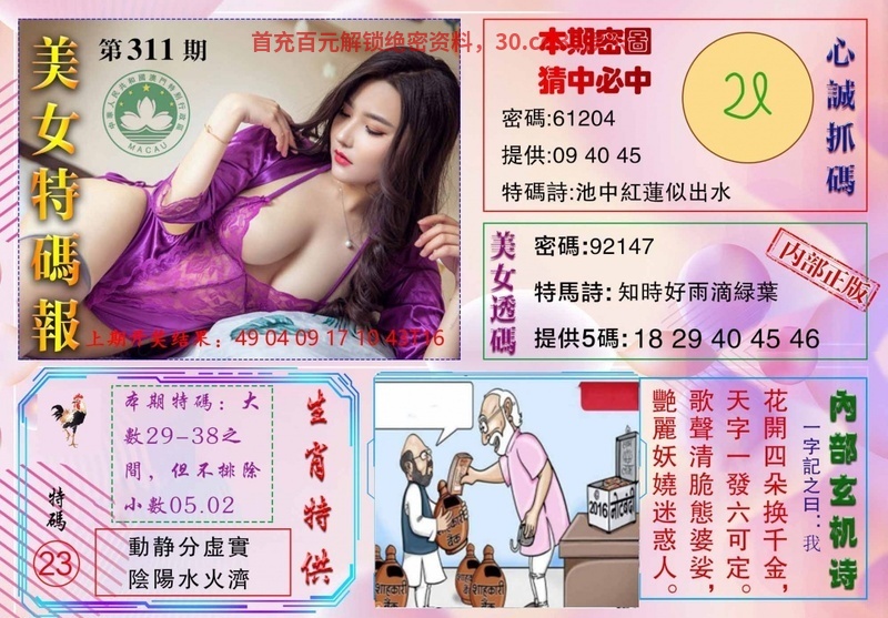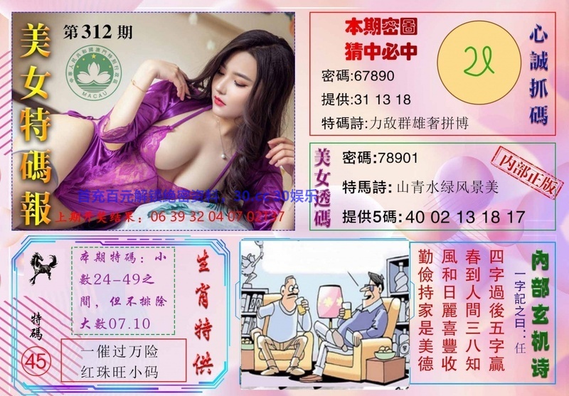 | 314期:闲情暗语:【更新】《發00》 解释:更新中 六肖:更新中 |